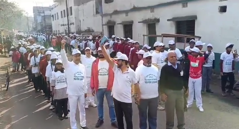 झरिया:- प्रदूषण के खिलाफ तंत्र को जगाने के लिए गुरुवार को पूर्व नियोजित कार्यक्रम के तहत झरिया वासियों ने चिल्ड्रेन पार्क से लेकर कतरास मोड़ तक दौड़ लगाई। दौड़ में समाजसेवी संग़ठन, राजनीतिक पार्टियों के लोग, चिकित्सक, व्यवसायी सहित बड़ी संख्या में स्कूली छात्र छत्राओं ने हिस्सा लिया। सुबह से ही चिल्ड्रेन पार्क में लोगों का जुटान होना शुरू हो गया था। दौड़ में शामिल सभी लोग मेरी सांसें मेरा हक लिखा टी शर्ट और टोपी लगाए थे। सभी ने एक स्वर में प्रदूषण के खिलाफ आवाज बुलंद की।