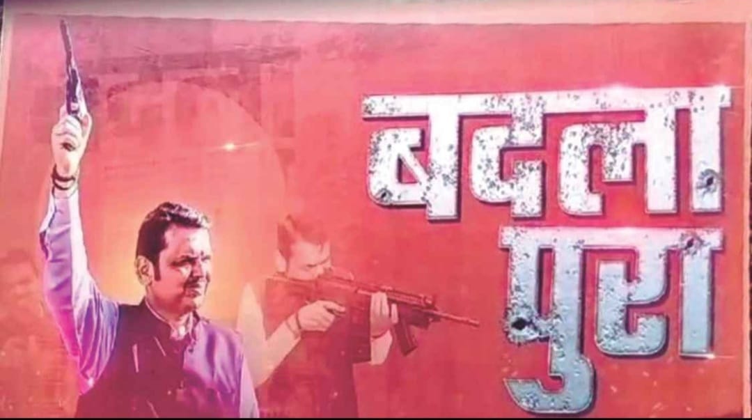 मुंबई के कुछ हिस्सों में ‘बदला पूरा’ लिखे पोस्टर लगाए गए हैं। इसमें उपमुख्यमंत्री देवेन्द्र फड़णवीस की तस्वीर है और ‘बदला पुरा’ लिखा हुआ है। पोस्टर में फड़णवीस के हाथ में रिवॉल्वर (बंदूक) दिखाई दे रही है। पोस्टर सोशल मीडिया पर भी वायरल हो गया है। वहीं विरोधियों ने इस पर फड़णवीस की आलोचना शुरू कर दी है। इस पोस्टर को लेकर सुप्रिया सुले का कहना है कि अगर गृह मंत्री हाथ में पिस्तौल लेकर बैनर लगा रहे हैं तो युवाओं में क्या संदेश जाएगा। यह ‘मिर्ज़ापुर’ सीरियल नहीं है।