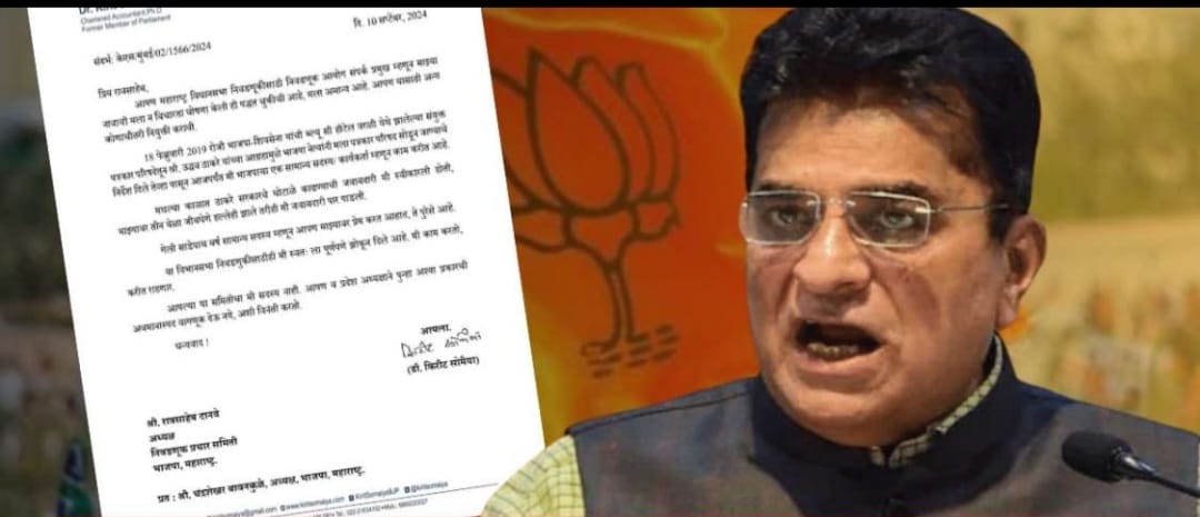 मुंबई : एक ओर जहां विधानसभा चुनाव से पहले बीजेपी में कई घटनाक्रम देखने को मिल रहे हैं, वहीं दूसरी ओर बीजेपी के फायरब्रांड नेता किरीट सोमैया के एक पत्र ने पार्टी में सनसनी मचा दी है।