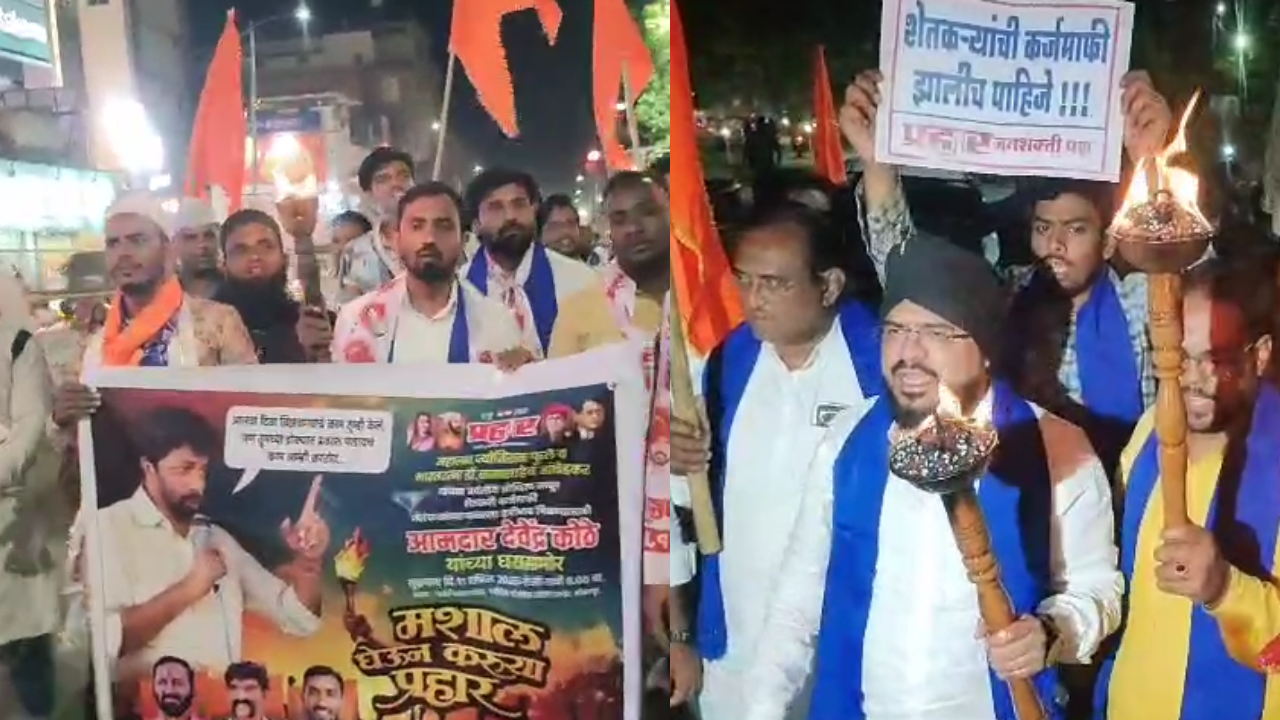 सोलापुर:- सोलापुर शहर के विधायक श्री सुभाष देशमुख और विधायक श्री देवेंद्र कोठे के निवास स्थान पर प्रहार जनशक्ती पार्टी की ओर से एक मशाल मोर्चा निकाला गया।यह मोर्चा सरकार द्वारा किए गए वायदों को पूरा न किए जाने के विरोध में आयोजित किया गया था।