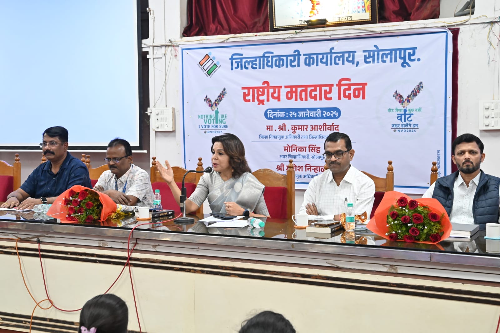 भारत निर्वाचन आयोग के निर्देशानुसार, 25 जनवरी को पूरे देश में राष्ट्रीय मतदाता दिवस के रूप में मनाया जाता है। इसी के तहत कलेक्टोरेट सोलापुर की ओर से अपर कलेक्टर मोनिका सिंह की अध्यक्षता में राष्ट्रीय मतदाता दिवस मनाया गया। इस अवसर पर उपजिला निर्वाचन अधिकारी गणेश निरहाली, प्रांतीय मजिस्ट्रेट सदाशिव पडदुने, प्रांतीय मजिस्ट्रेट नीलेश पाटिल, नायब तहसीलदार प्रवीण घाम सहित राजस्व अधिकारी, संगमेश्वर कॉलेज के कर्मचारी और दयानंद कॉलेज के छात्र बड़ी संख्या में उपस्थित रहे।