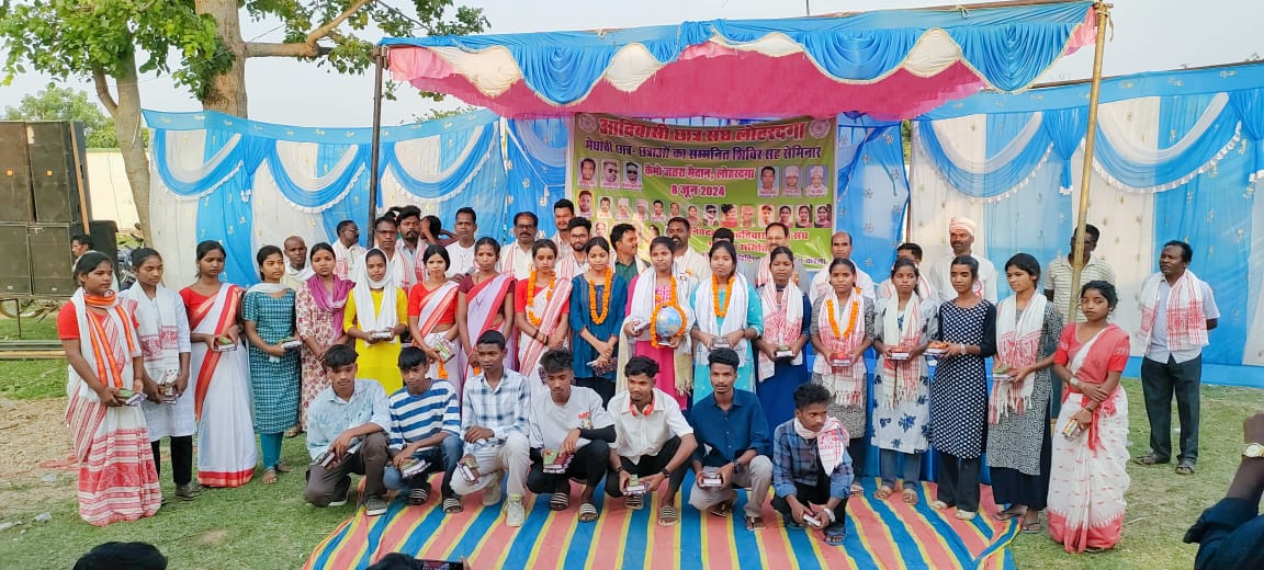 लोहरदगा:- शनिवार को आदिवासी छात्र संघ जिला समिति लोहरदगा के द्वारा सदर प्रखण्ड लोहरदगा के मन्हो पंचायत अंतर्गत कैमो महुवा टोली के जतरा मैदान में वर्ष 2024 के 10वीं और 12वीं में उत्तीर्ण मेधावी आदिवासी छात्र छात्रों का सम्मान सह सेमिनार कार्यकर्म का आयोजन किया गया। कार्यक्रम के मुख्य अतिथि के रुप में आदिवासी छात्र संघ के केंद्रीय अध्यक्ष सुशील उराँव उपस्थित थे। कार्यकर्म में 12वीं के 30छात्र – छात्रों को और 10वीं के 70 छात्र- छात्रों को सम्मानित किया गया।