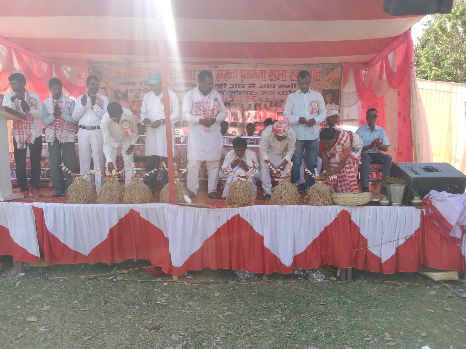 लोहरदगा: राजी पड़हा सरना प्रार्थना सभा बाघा सिंगपुर लोहरदगा के सामाजिक जागरूकता सह सरना प्रार्थना समारोह का आयोजन किया गया। कार्यक्रम की अगुवाई पहान दिलीप उरांव, पूजार चेपो उरांव, महतो चन्द्रनाथ उरांव व संरक्षक उपाध्यक्ष आशिष उरांव, सचिव कुन्दन उरांव, कोषाध्यक्ष सुरेश उरांव, चामा उरांव, रमेश उरांव,प्रमेशवर लकड़ा,अजय उरांव, सुरेन्द्र लकड़ा, हरीश उरांव, विकास लकड़ा, सुरेश उरांव, सोमनाथ उरांव, अनिल उरांव, महेंद्र उरांव, कमलेश्वर लकड़ा के संयुक्त तत्वावधान में आयोजित की गई।
