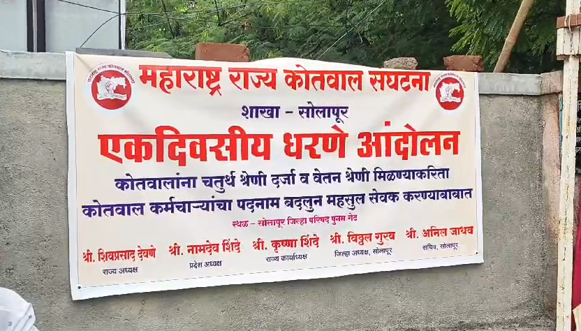 सोलापुर :- सोलापुर जिले के सभी पुलिस अधिकारी अपनी मांगों को पूरा करवाने के लिए विरोध प्रदर्शन कर रहे हैं। वे मांग कर रहे हैं कि पुणे को चौथी श्रेणी में वर्गीकृत किया जाए और पुलिस अधिकारियों को तलाठी भर्ती में आरक्षण मिले।